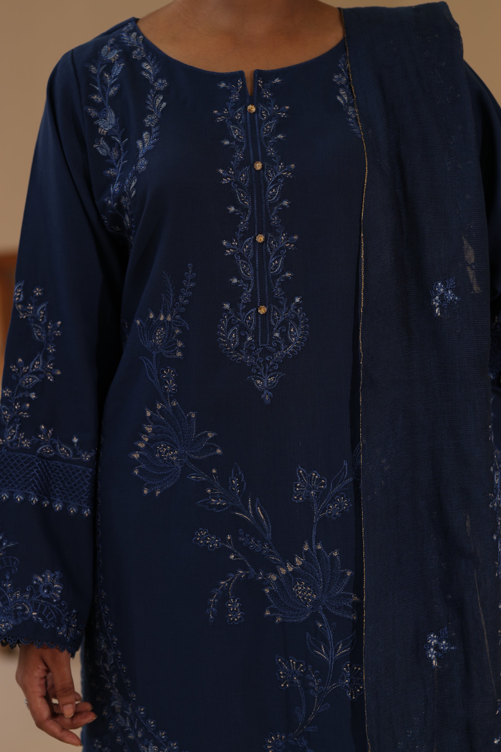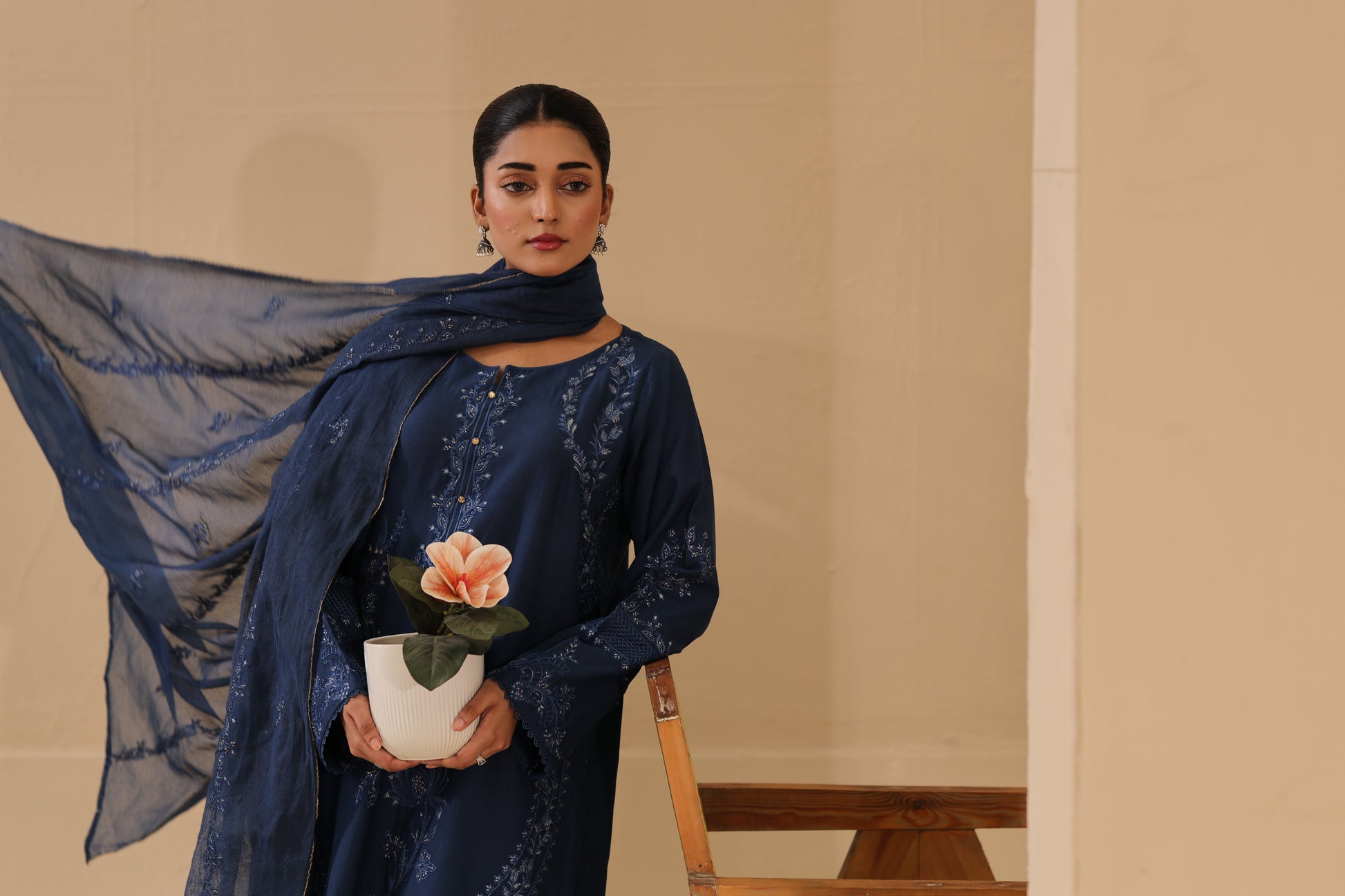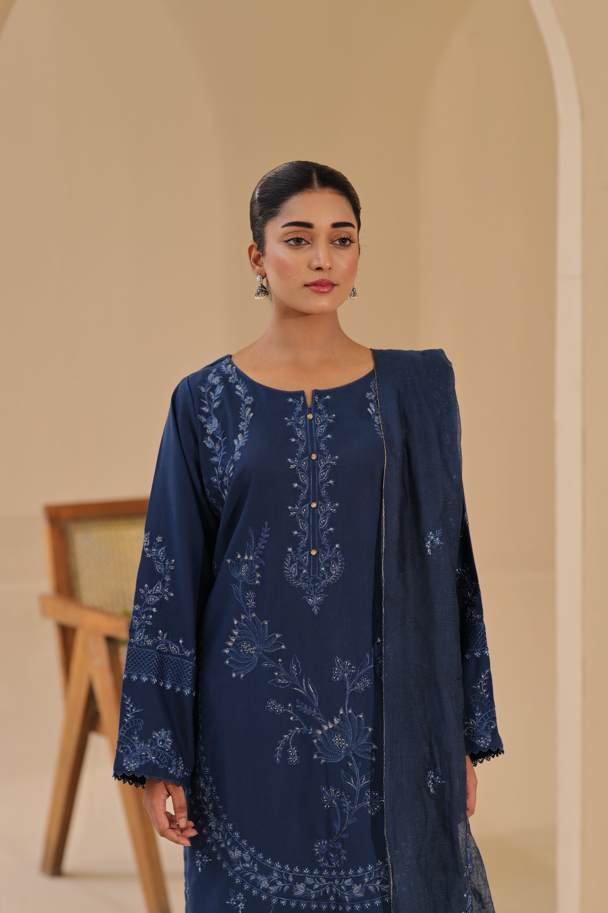Elevate your winter look with this khaddar embroidered shirt, paired with a cotton net embroidered dupatta and khaddar embroidered Trouser. Rich in detail and crafted for warmth, this ensemble beautifully combines luxury, comfort, and timeless elegance — perfect for the winter season.