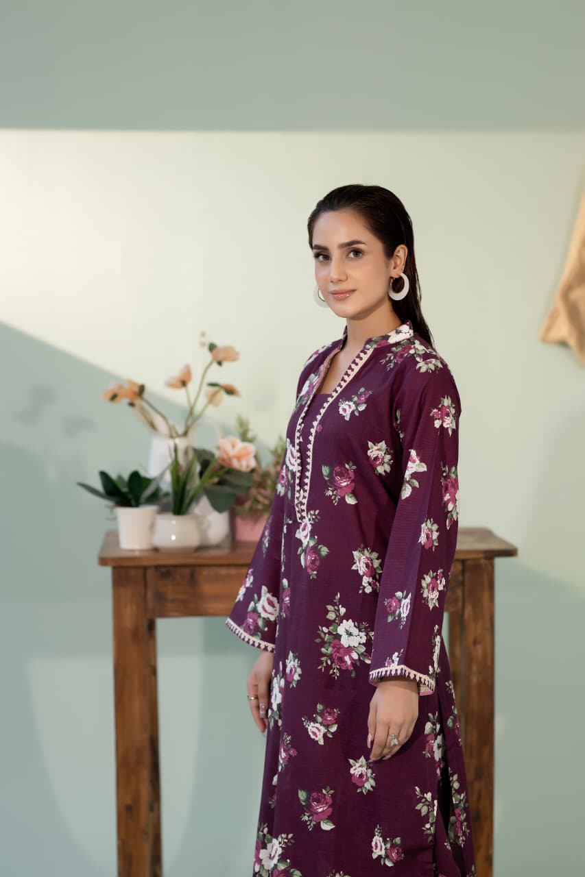 Embrace winter comfort with this khaddar printed shirt paired with a printed trouser. Designed for effortless style and everyday elegance, this outfit blends vivid prints, cozy fabric, and a timeless winter feel.