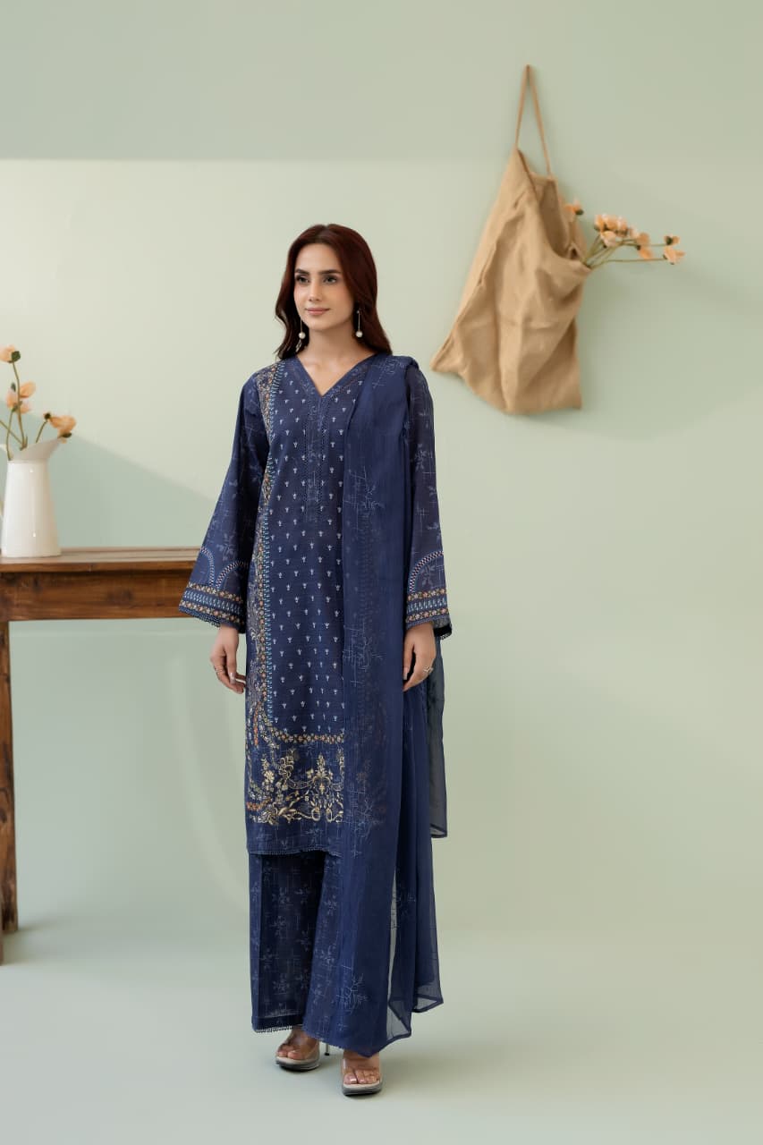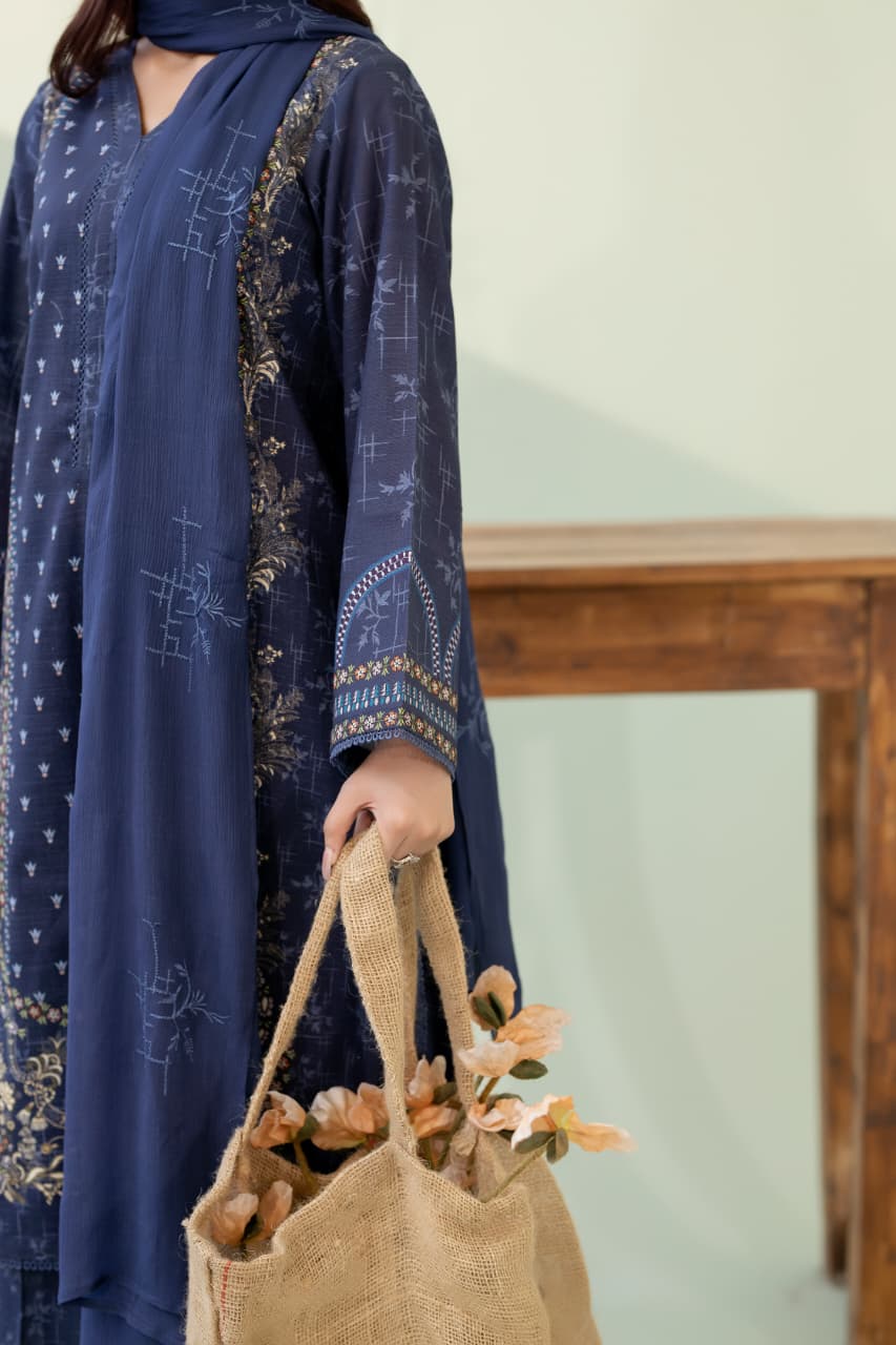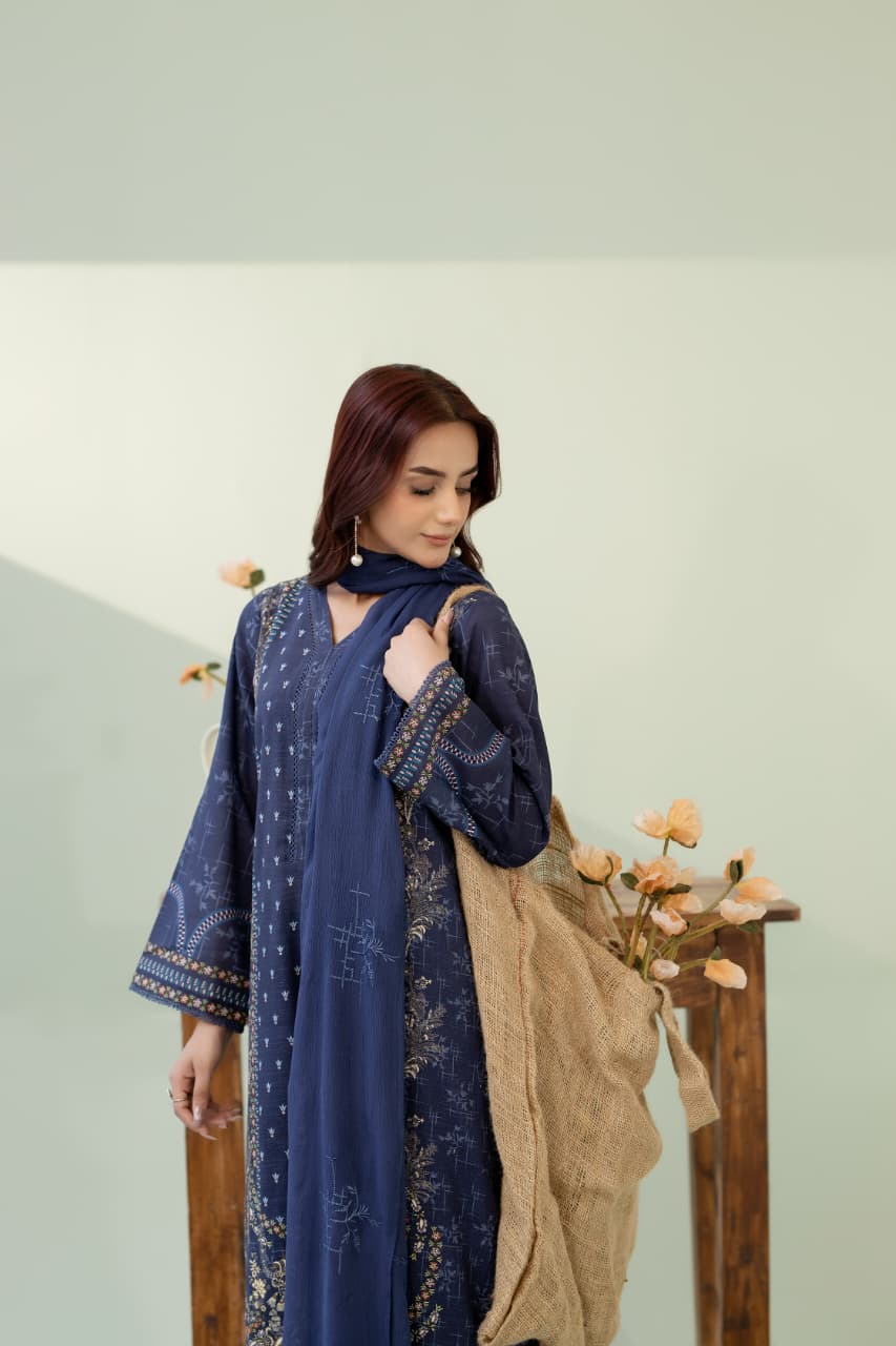 A perfect balance of comfort and charm — this khaddar printed shirt and trouser set is paired with a chiffon embroidered dupatta for a touch of elegance. Ideal for winter days, it blends vibrant prints, soft fabric, and refined details to create a timeless seasonal look.