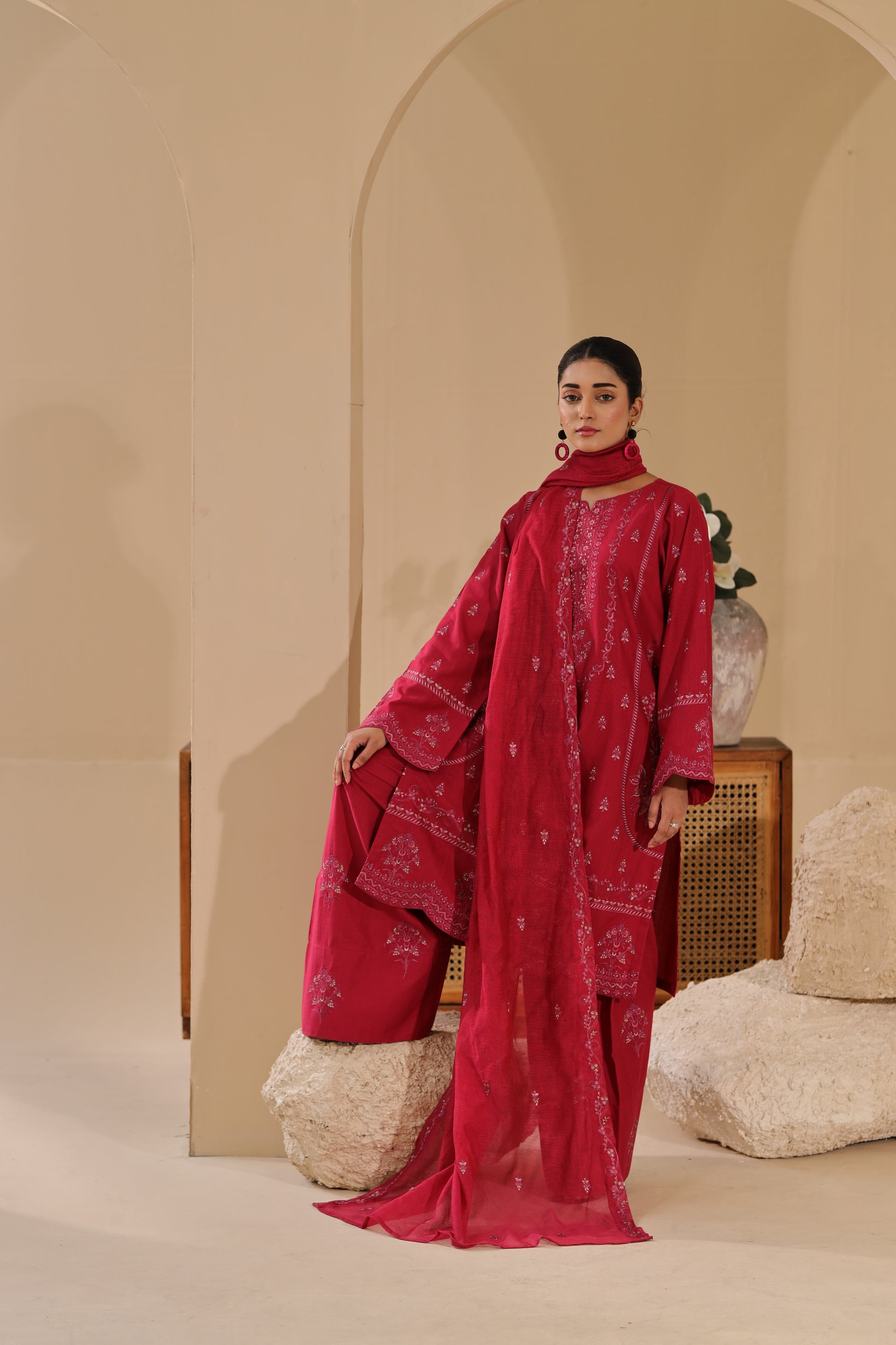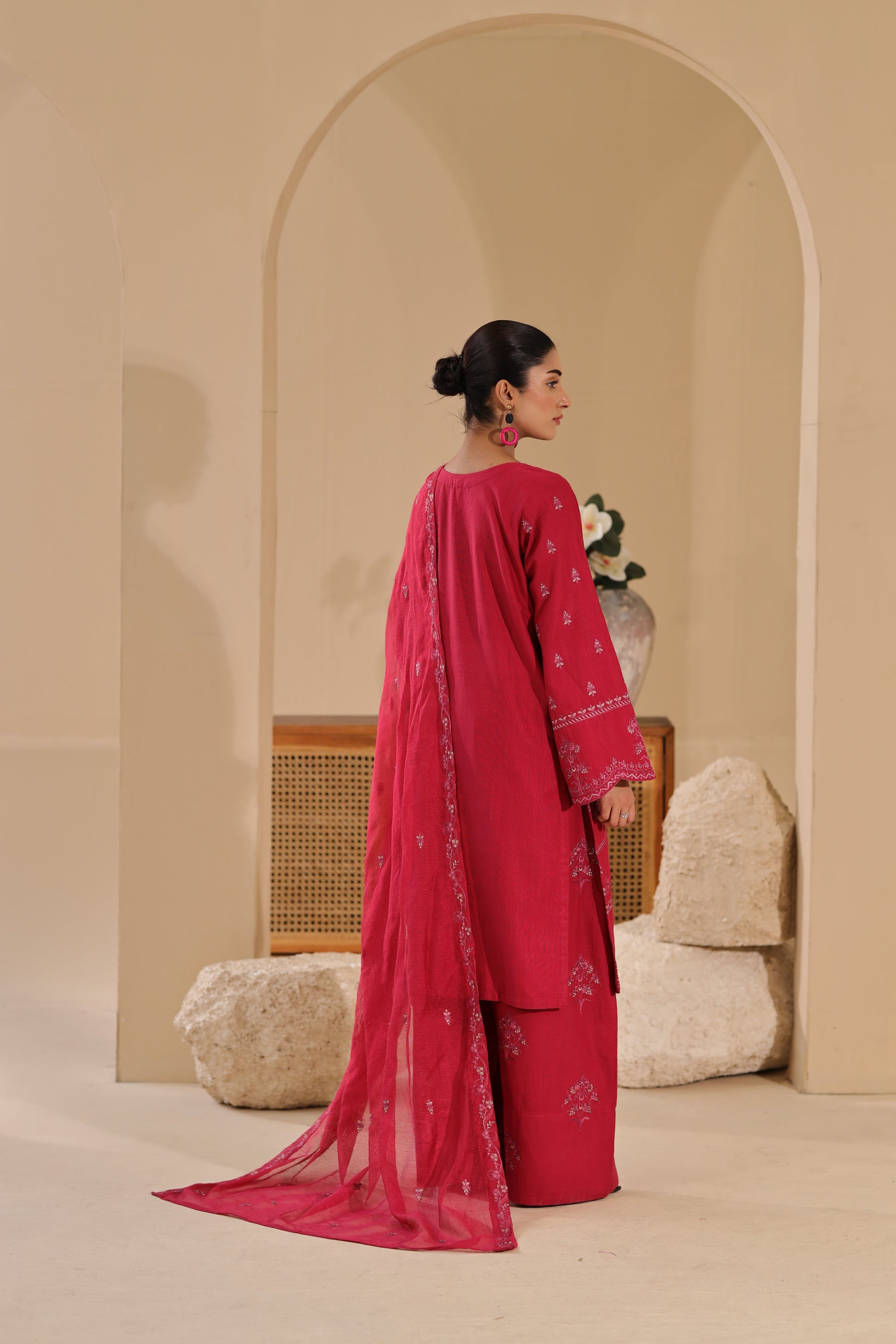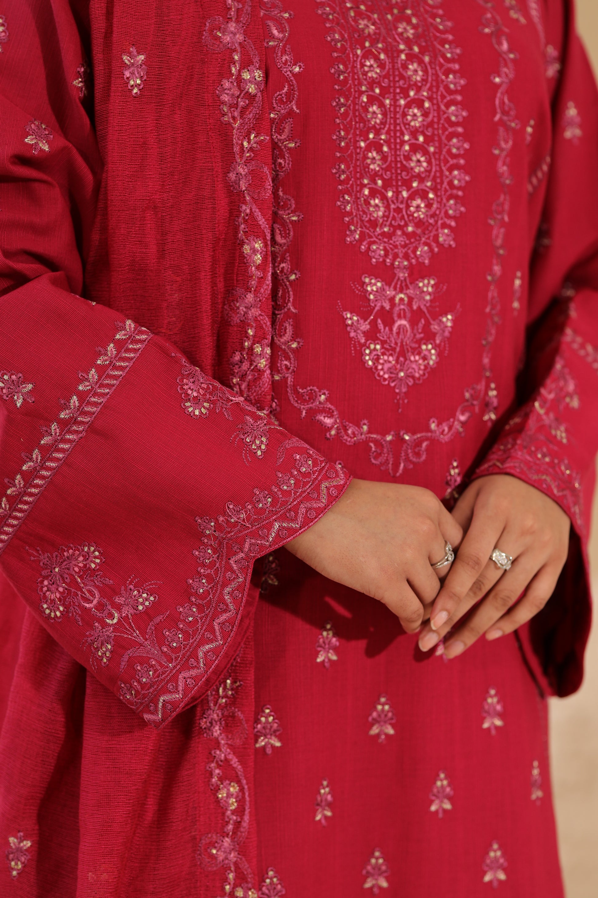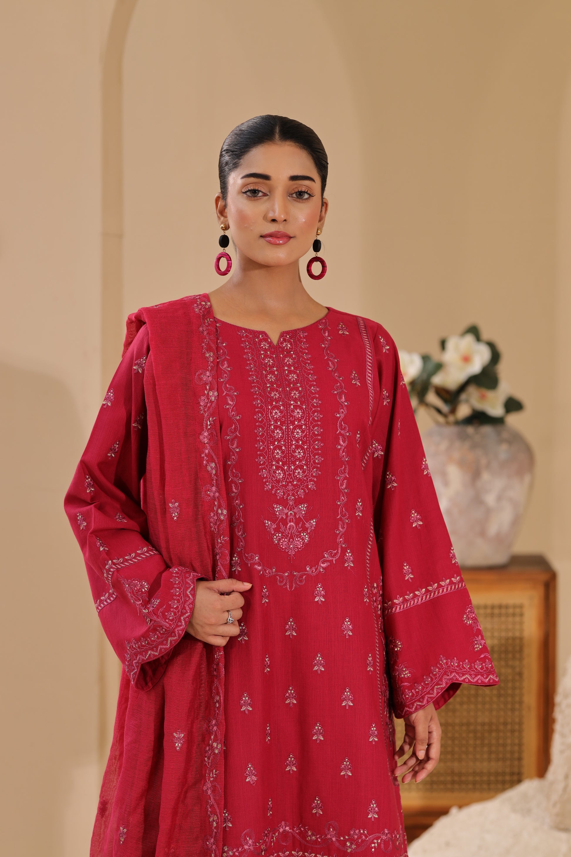 Elevate your winter look with this khaddar embroidered shirt, paired with a cotton net embroidered dupatta and khaddar embroidered Shalwar. Rich in detail and crafted for warmth, this ensemble beautifully combines luxury, comfort, and timeless elegance — perfect for the winter season.
