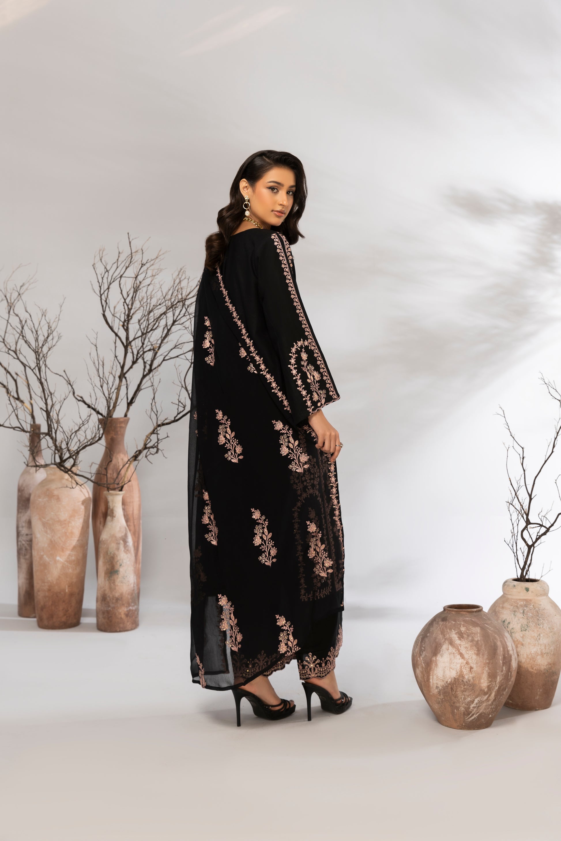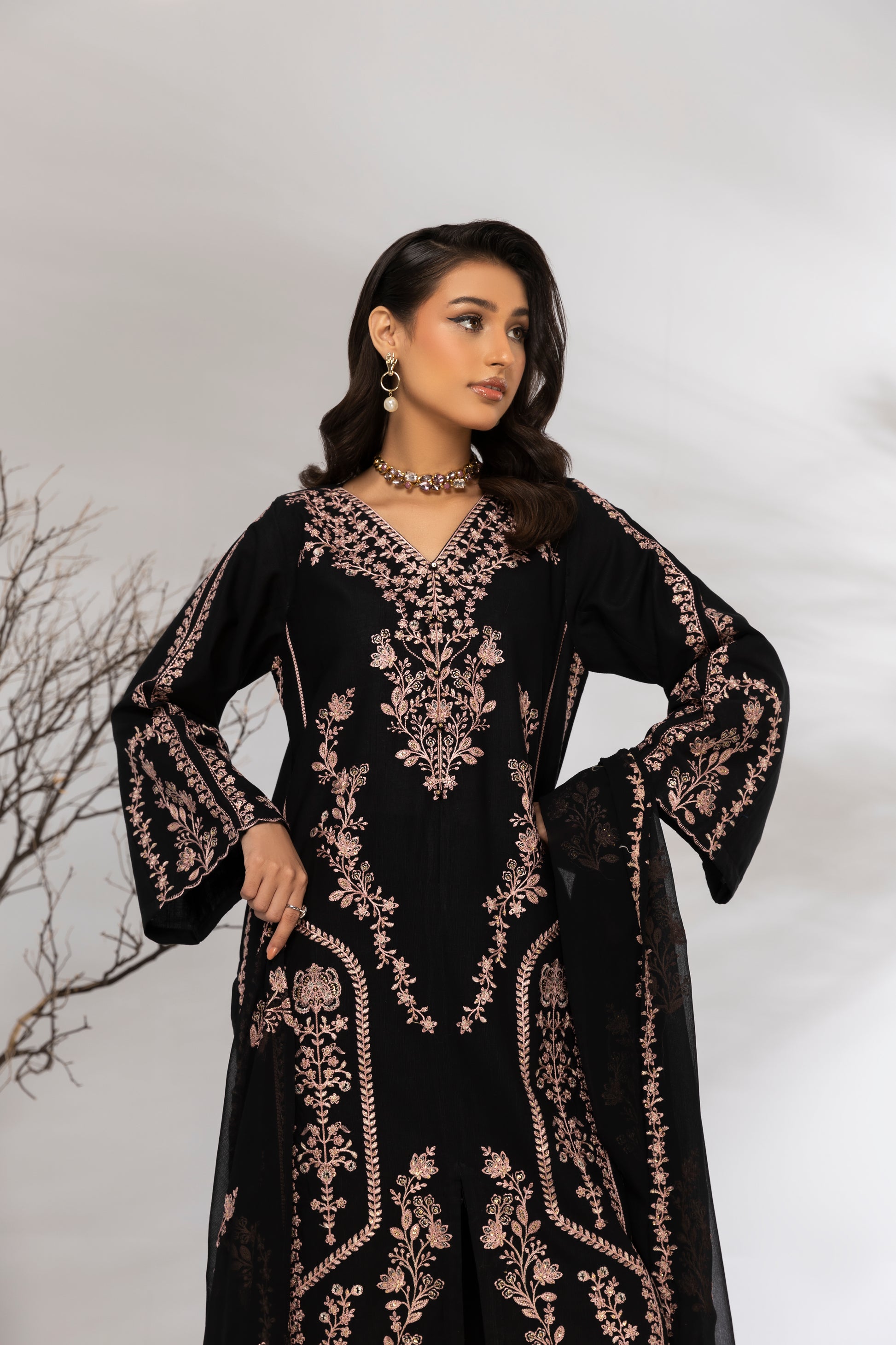 Discover timeless elegance with our latest Sequin Collection, crafted for the modern woman who loves to shine. This stunning ensemble features a khaddar sequin embroidered shirt that exudes charm and sophistication. Paired with a delicately sequin-embellished chiffon dupatta and beautifully embroidered trouser, each element comes together to create a masterpiece of grace and glamour.