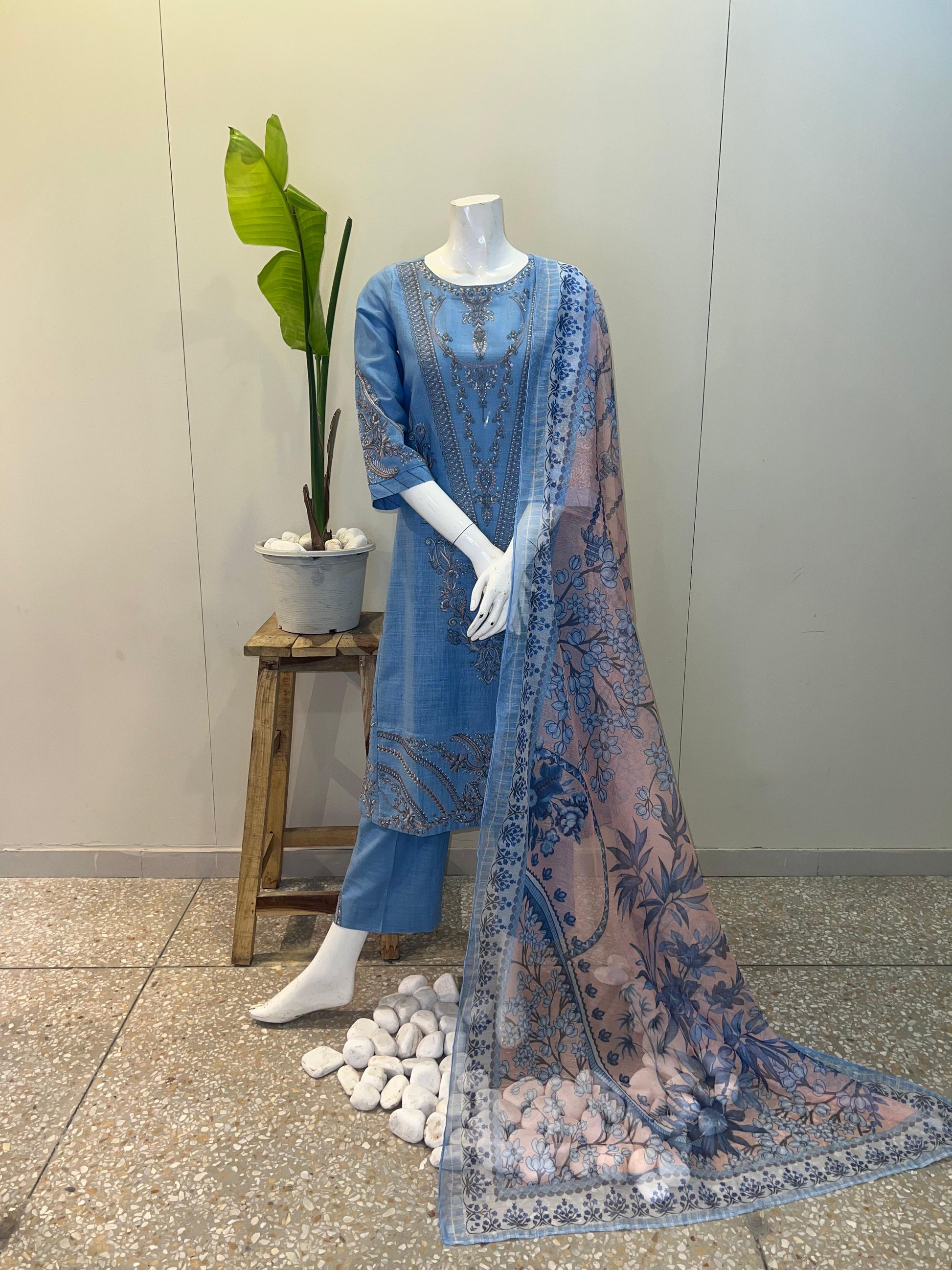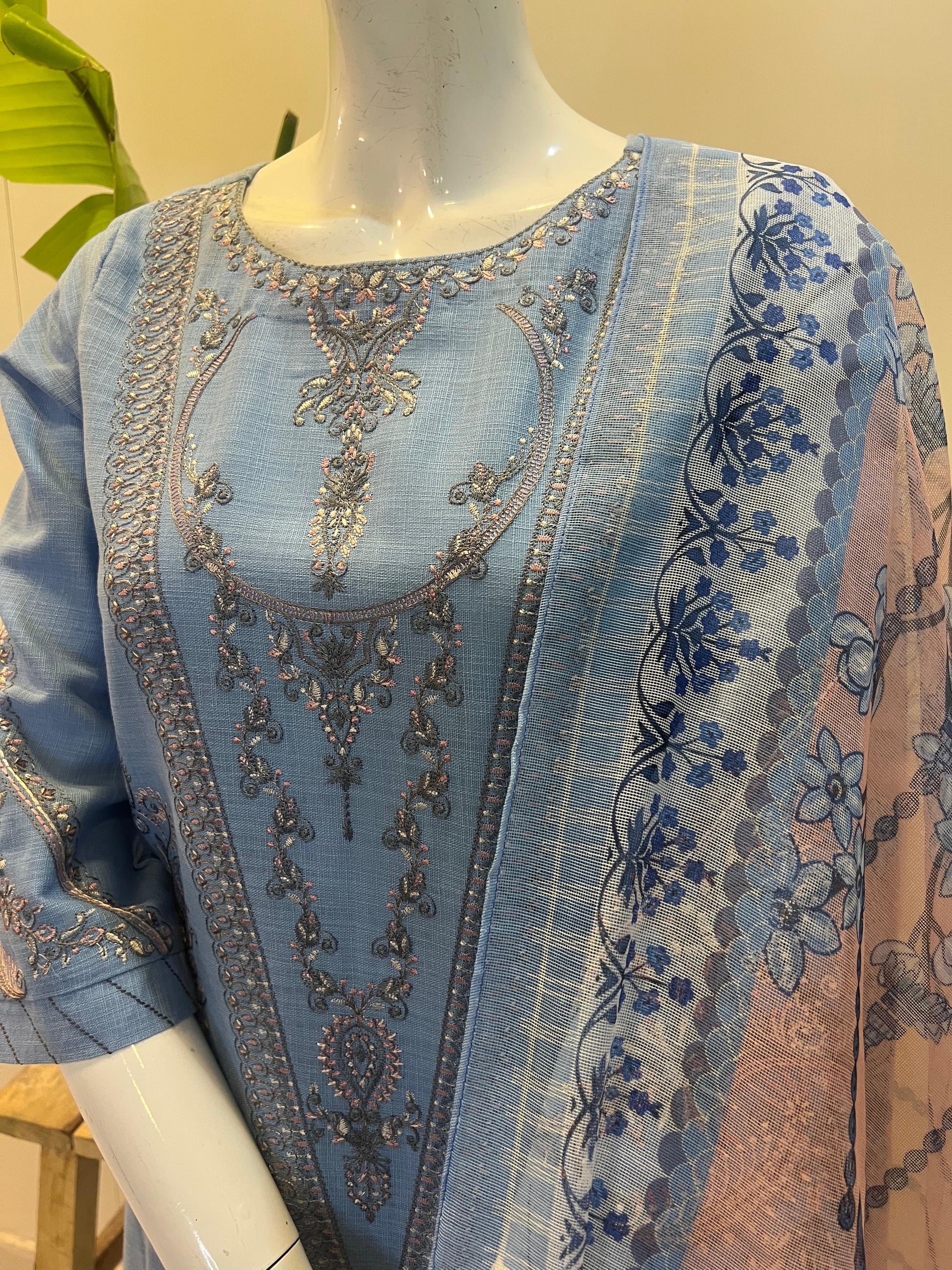 khaddar Embroidered shirt,cotton net dupatta with khaddar trouser