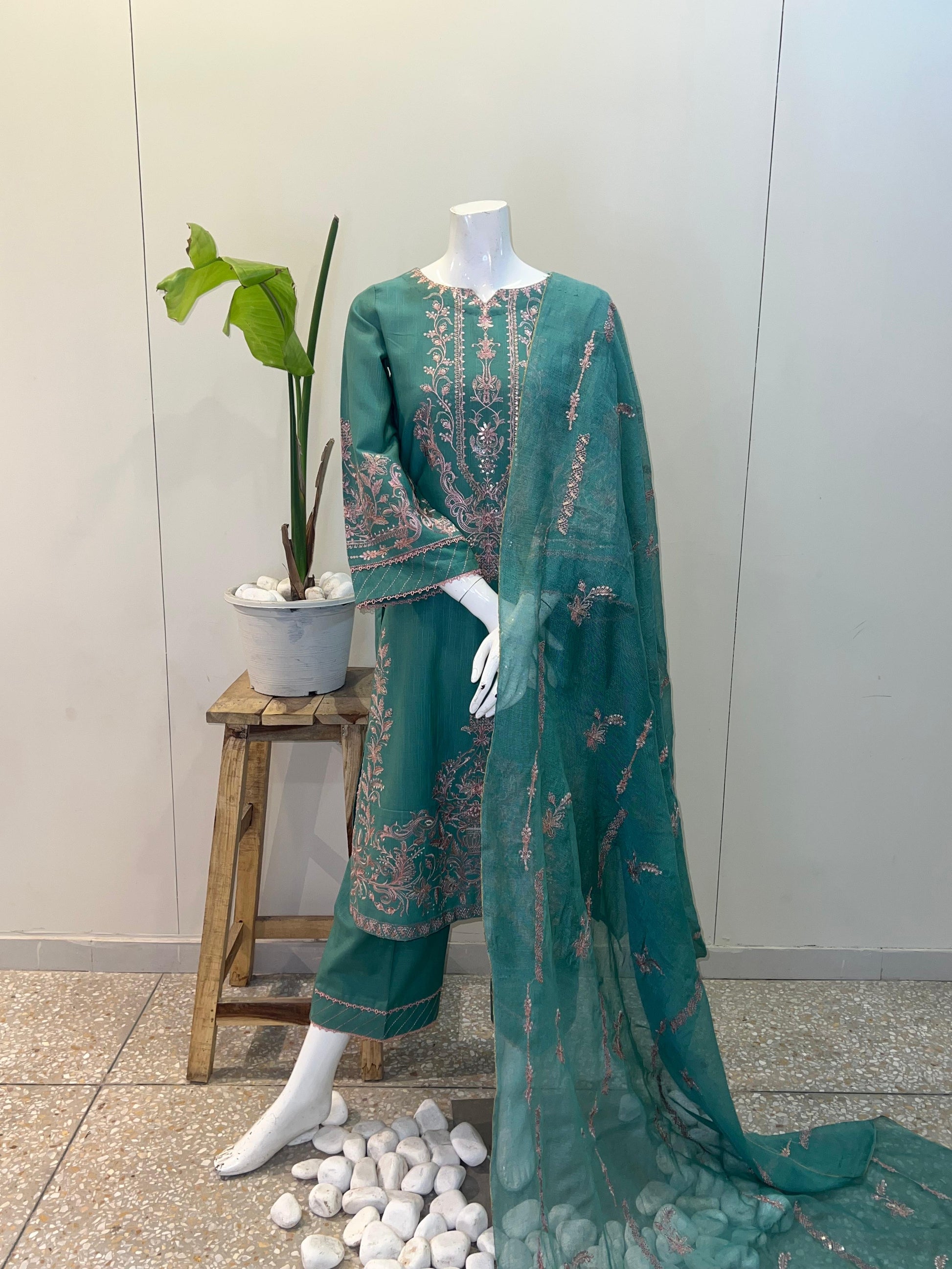 khaddar Embroidered shirt, shalwar with khaddi net dupatta