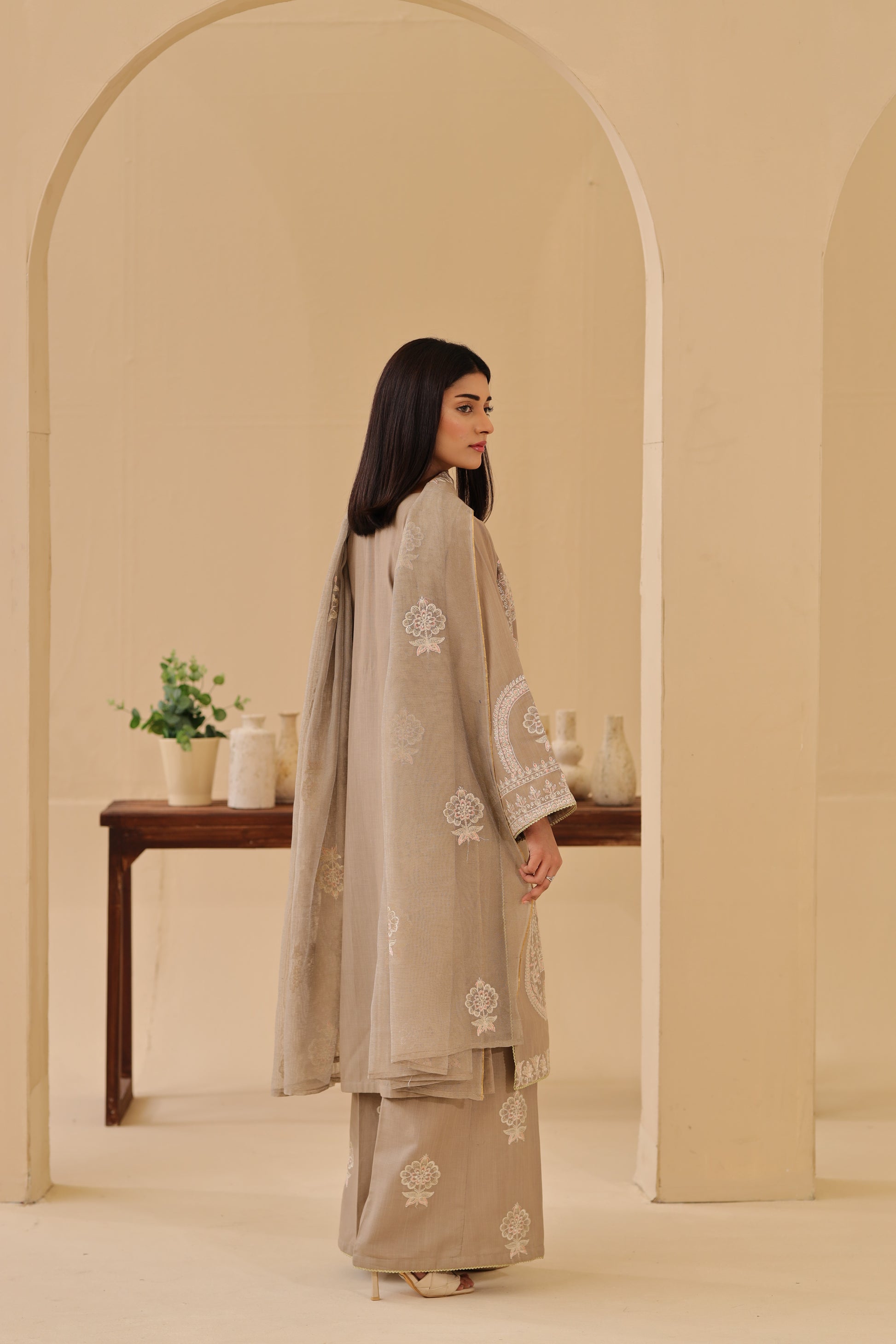 Elevate your winter look with this khaddar embroidered shirt, paired with a cotton net embroidered dupatta and khaddar embroidered Trouser. Rich in detail and crafted for warmth, this ensemble beautifully combines luxury, comfort, and timeless elegance — perfect for the winter season.