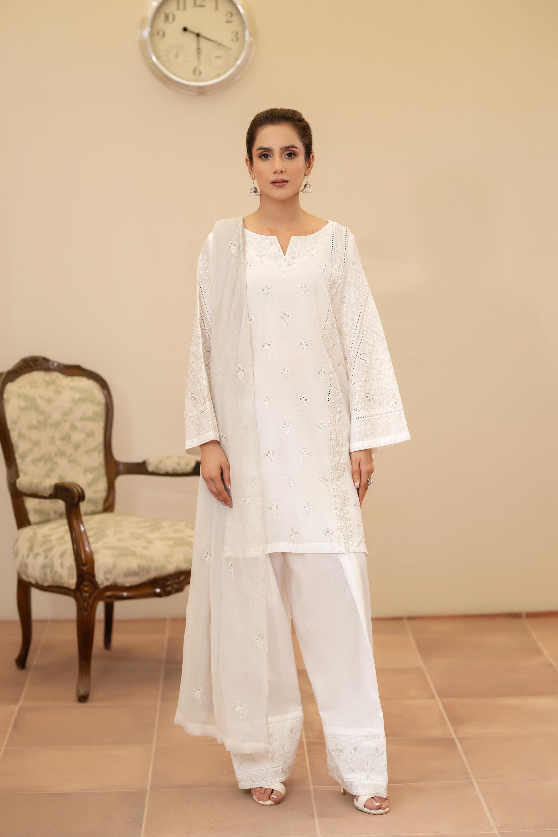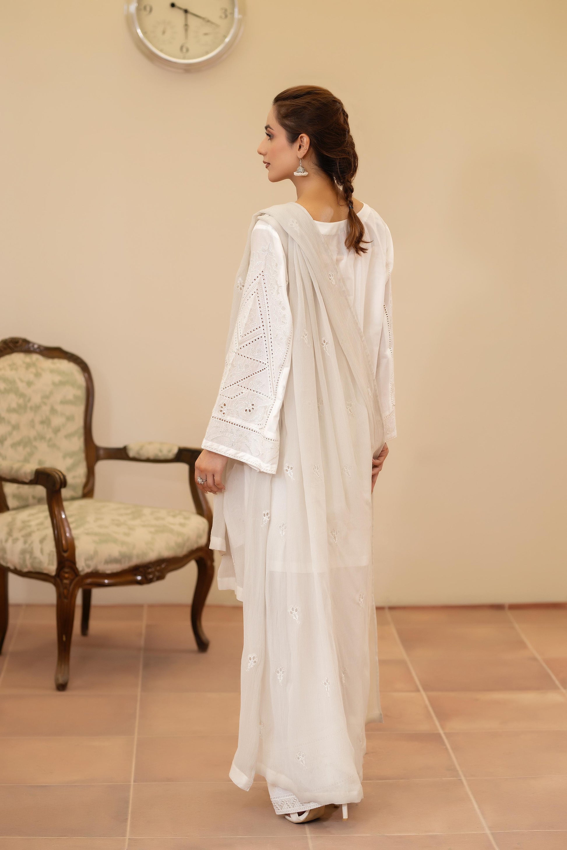 Embroidered Shirt with Chiffon Embroidered Dupatta and Embroidered trouser